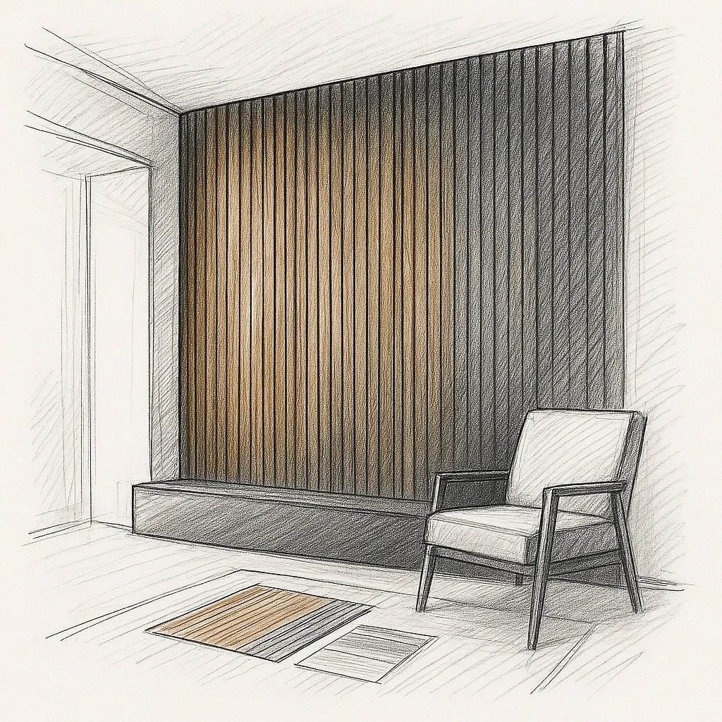 Explore more ideas in our Media Wall Gallery or book a consultation to customize your own slatted wall layout.